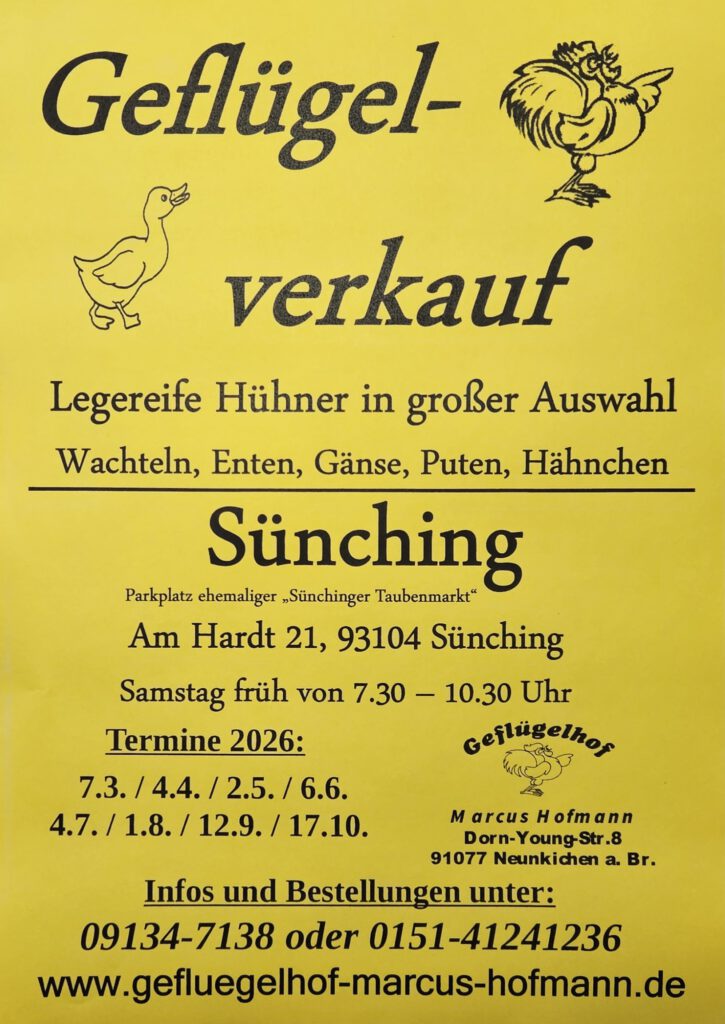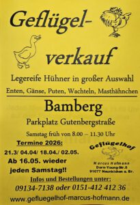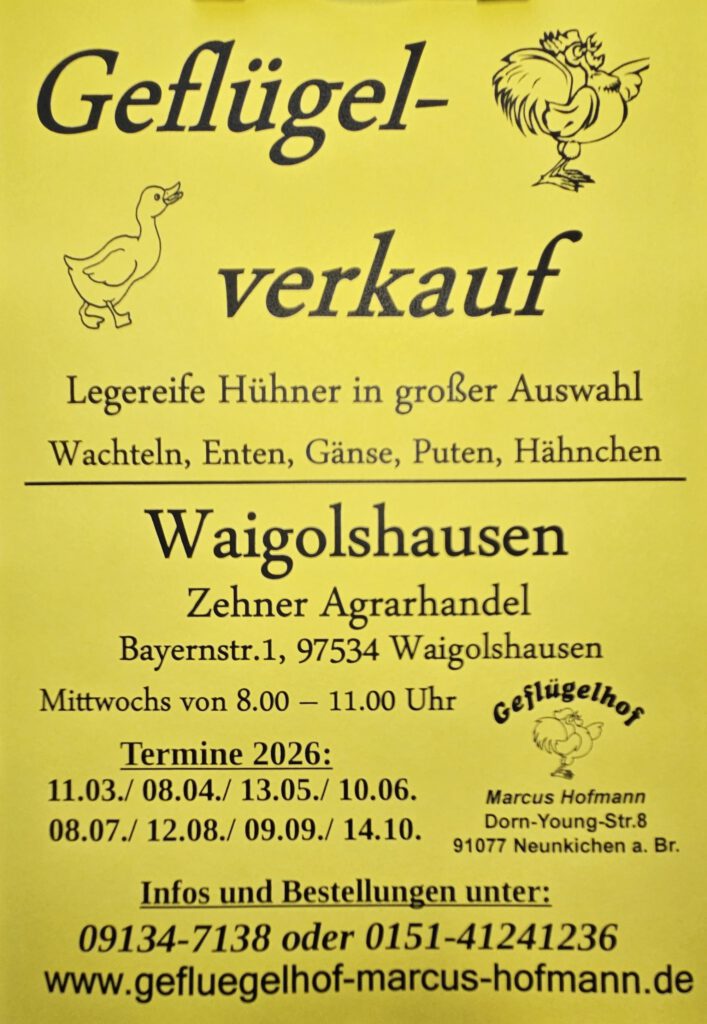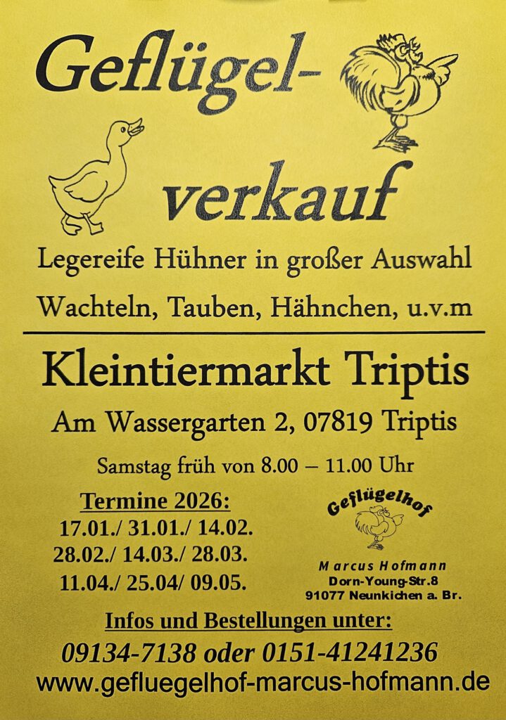 Daneben sind wir auf verschiedenen regionalen Geflügel- und Kleintiermärkten vertreten.