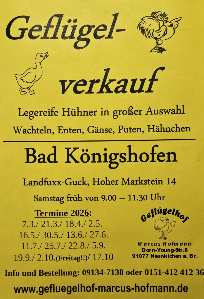 Rufen Sie uns einfach an oder schreiben Sie uns eine Mail unter info@gefluegelhof-marcus-hofmann.de und lassen Sie sich ein Angebot unterbreiten!!
