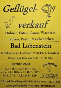 Bestellungen und weitere Infos unter 09134-7138 oder per WhatsApp unter 0151 412 412 36